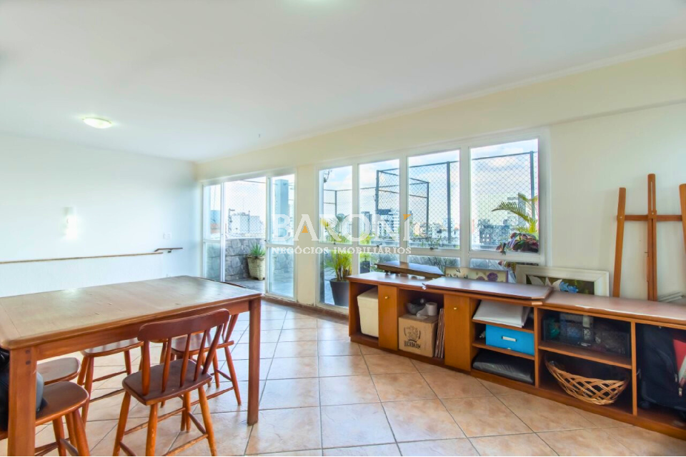 Cobertura duplex à venda no Campo Belo, 195m², 4 quartos (1 suíte), 2 vagas, churrasqueira e lazer completo. Baroni Imóveis, imobiliária em Moema, especializada em compra e venda de imóveis residenciais em São Paulo.