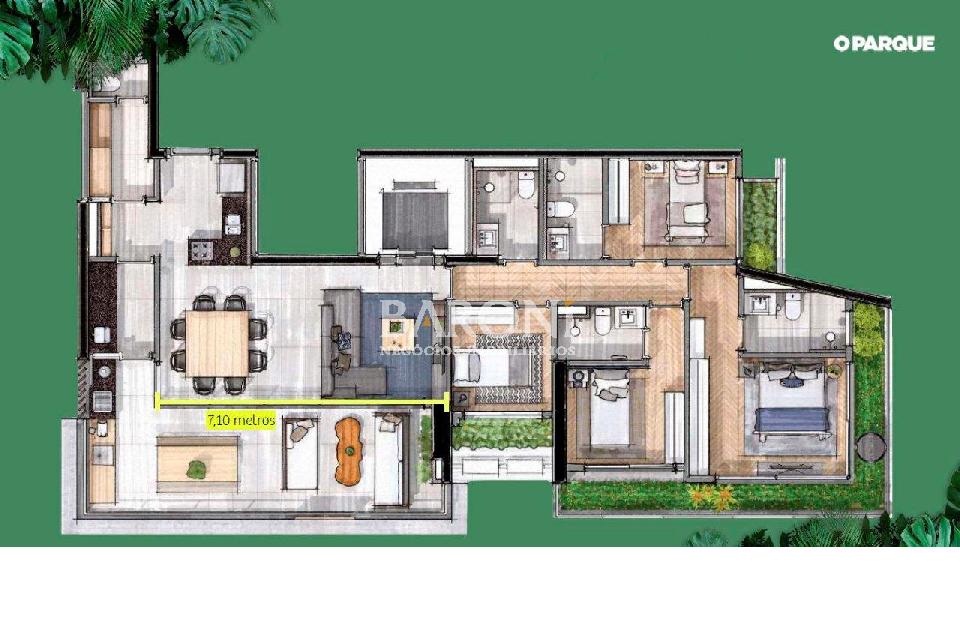 Apartamento à venda no Brooklin, 167 m², 4 quartos (sendo 3 suítes) e 3 vagas demarcadas mais depósito. Seja bem-vindo ao seu novo lar no empreendimento O Parque - uma unidade exclusiva à sua espera. Com uma ótima metragem, este apartamento foi projetado para atender a todos os seus desejos, começando pela varanda gourmet ampla e espaçosa integrada a sala. Uma planta versátil que possibilita a integração dos espaços sociais, como a varanda, as salas e a cozinha da forma que melhor se adequar ao seu estilo de viver e receber. Com 4 quartos, sendo 3 suítes e um quarto coringa, perfeito para ser utilizado como um espaço de escritório ou quarto de hóspedes. Os quartos recebem luz natural pelas janelas do chão ao teto, com floreiras automatizadas. A parte íntima do apartamento tem a possibilidade de ser entregue com piso de madeira cumaru instalada. O lavabo (ou banheiro social completo) e o banheiro de serviço completam a praticidade desse layout pensado nos mínimos detalhes. O Parque oferece um estilo de vida além do lar. Situado em um terreno com 38.252 m², com mais de 10 mil m² de área verde, é um refúgio na cidade. O edifício Pétala com lazer completo: complexo aquático com 1000 m², piscina coberta aquecida, quadra de tênis de saibro, quadra de squash, quadra infantil coberta, mesabol, salão gastronômico, lounge com vista panorâmica, sala de pilates, academia equipada, saunas seca e úmida, sala de massagem, sala de jogos, brinquedoteca, espaço baby, salão de festas, espaço gourmet 1 e 2. Sistema de segurança completo, incluindo portas giratórias, eclusas e portões centralizados. Localizado na avenida Roque Petroni Júnior, próximo da Berrini, Chucri Zaidan, Marginal Pinheiros, Morumbi Shopping, Market Place e Metrô Brooklin. Gostou? Agende sua visita com um dos nossos corretores, a Baroni tornará esta a melhor jornada de compra da sua vida! Referência do imóvel: 409048. Baroni Imóveis, imobiliária sediada em Moema, especializada em compra e venda de apartamentos e casas, em bairros nobres de São Paulo.