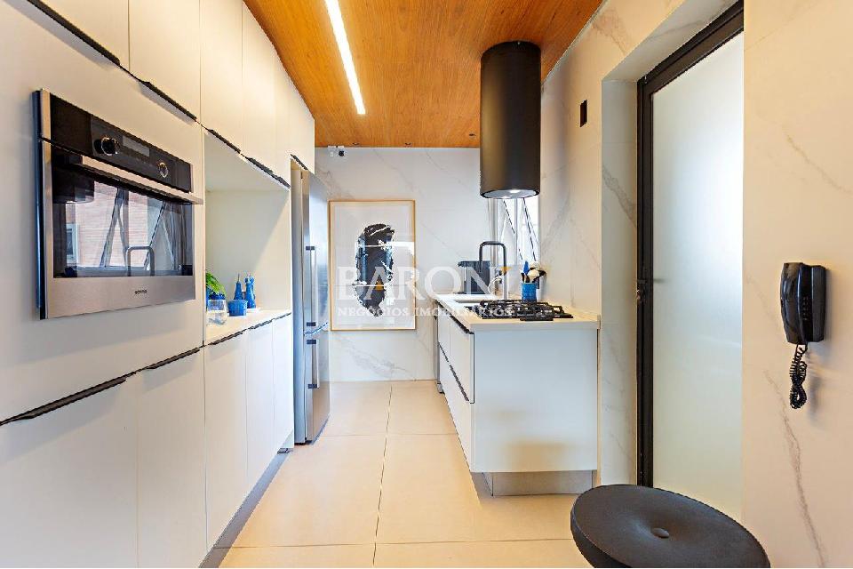Apartamento à venda na Vila Olímpia, reformado, 132m², 2 suítes, varanda gourmet, 2 vagas, lazer piscina, academia e salão de festas. Baroni Imóveis, imobiliária em Moema, especializada em compra e venda de imóveis residenciais em São Paulo.