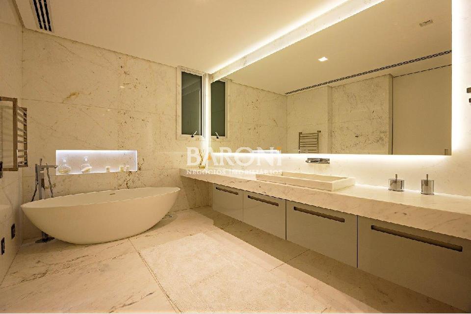 Cobertura à venda no Itaim Bibi, com 659m², 5 suítes, 6 vagas e depósito na garagem. Com projeto assinado por David Bastos, este apartamento destaca-se pela distribuição inteligente dos ambientes, integração entre área social e varanda gourmet, além de acabamentos selecionados com rigor estético. O hall privativo é revestido em mármore e o espaço conta com adega climatizada para até 950 garrafas. O living reúne estar, jantar e home theater conectados à varanda aberta, que abriga uma área gourmet equipada com churrasqueira, cervejeira, chopeira e máquina de gelo. Na área íntima, 5 suítes bem distribuídas, sendo a principal com dois closets independentes e banheiros Sr. e Sra. Uma das suítes está adaptada como escritório. A cobertura também conta com sauna, elevador interno que conecta os três níveis; automação para som, iluminação e climatização, venezianas elétricas; vidros duplos com isolamento acústico e armários Ornare. Ao entardecer, o pôr do sol preenche os ambientes com uma luminosidade especial, reforçando a atmosfera acolhedora dos espaços. O edifício Casa Ferraz tem excelente estrutura de lazer e segurança. Localização privilegiada na rua Doutor Mário Ferraz, próximo a vários estabelecimentos e com rua arborizadas. Gostou? Agende sua visita com um dos nossos corretores, a Baroni tornará esta a melhor jornada de compra da sua vida! Referência do imóvel: 413401. Baroni Imóveis, imobiliária sediada em Moema, especializada em compra e venda de apartamentos e casas, em bairros nobres de São Paulo.