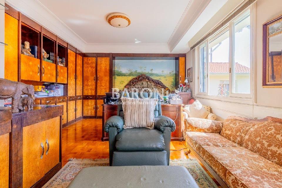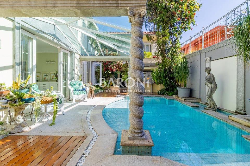 Casa à venda no Jardim Luzitânia, 572m², 5 dormitórios, sendo 2 suítes, lareira, churasqueira, piscina, 5 vagas. Baroni Imóveis, imobiliária em Moema, especializada em compra e venda de imóveis residenciais em São Paulo. (11) 96862-9780.
