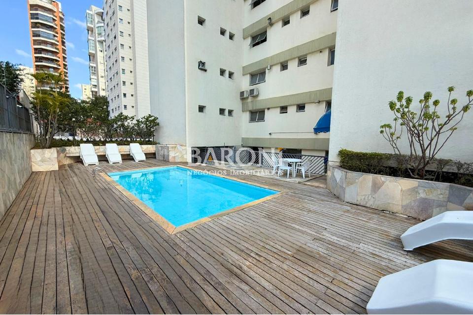 Apto na Vila Olímpia, 94m², 3 dorms (1 suíte c/ closet), 3 banheiros e 1 vaga. Localização privilegiada, perto de restaurantes e parques. Condomínio com piscina, academia, salão de festas e portaria 24h. Baroni Imóveis, imobiliária em Moema.