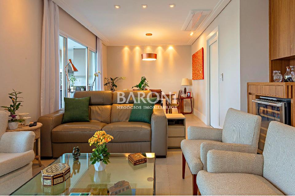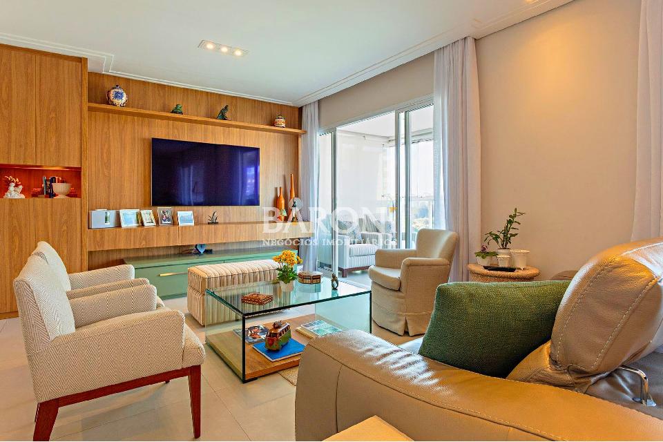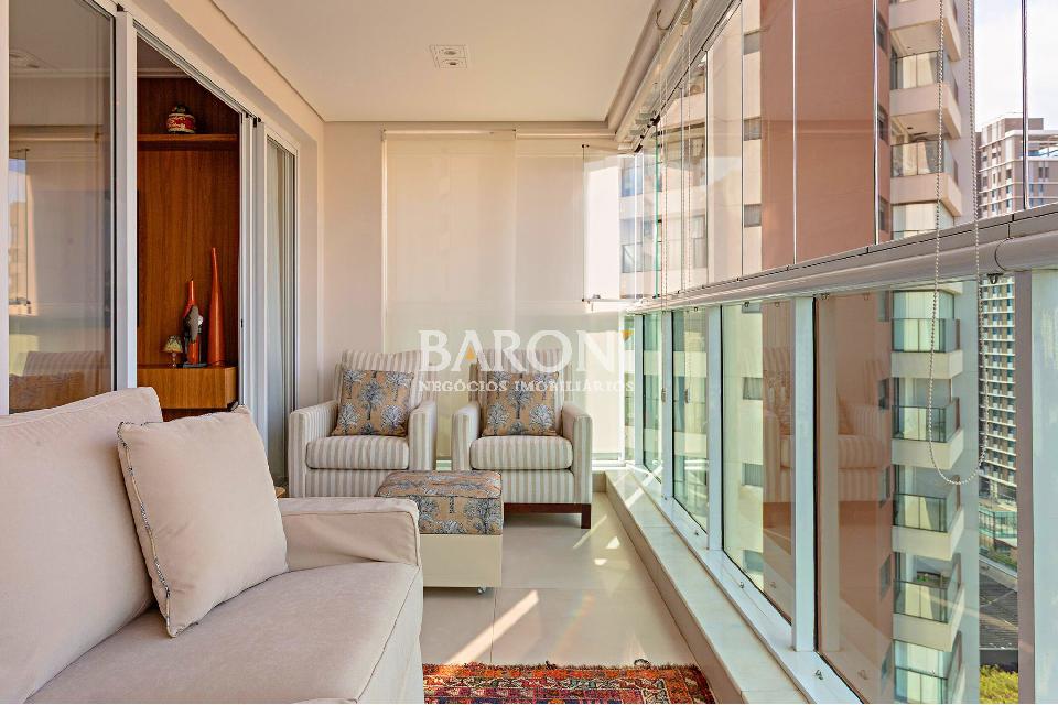Apartamento à venda em Moema, andar alto, 154m², 3 suítes, terraço gourmet, 3 vagas, lazer completo, Avenida Açocê, próximo ao Parque Ibirapuera. Baroni Imóveis, imobiliária em Moema, especializada em compra e venda de imóveis residenciais em São Paulo.