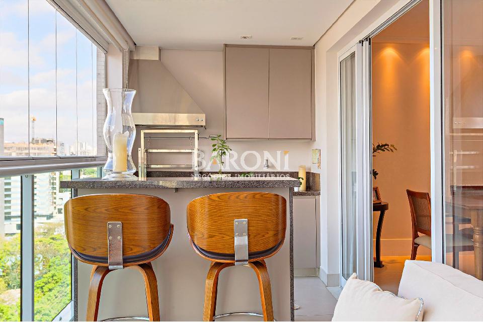 Apartamento à venda em Moema, 154m² de área útil, 3 suítes, 3 vagas de garagem. Em andar alto, com vista aberta e definitiva para o Skyline de São Paulo e das áreas verdes e piscinas da região. Este imóvel foi reformado, está lindo e pronto para morar. Possui amplo terraço gourmet com churrasqueira, cooktop, coifa e bancada, perfeito para receber com conforto. Living para 3 ambientes, lavabo, suíte master com com walk-in closet. Sala de almoço e cozinha integradas e equipadas com marcenaria planejada, este imóvel ainda conta com ampla área de serviço e dormitório de apoio e ar-condicionado nos ambientes. O condomínio oferece lazer completo com piscinas cobertas e climatizadas, academia, salão de festas, brinquedoteca, quadra poliesportiva, playground e pomar. A localização é privilegiada em Moema, Avenida Açocê, próximo ao Parque Ibirapuera, Parque das Bicicletas, Clube Monte Líbano, Shopping Ibirapuera e estação de Metrô. Gostou? Agende sua visita com um dos nossos corretores, a Baroni tornará esta a melhor jornada de compra da sua vida! Baroni Imóveis, imobiliária sediada em Moema, especializada em compra e venda de apartamentos e casas, em bairros nobres de São Paulo.