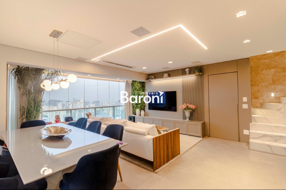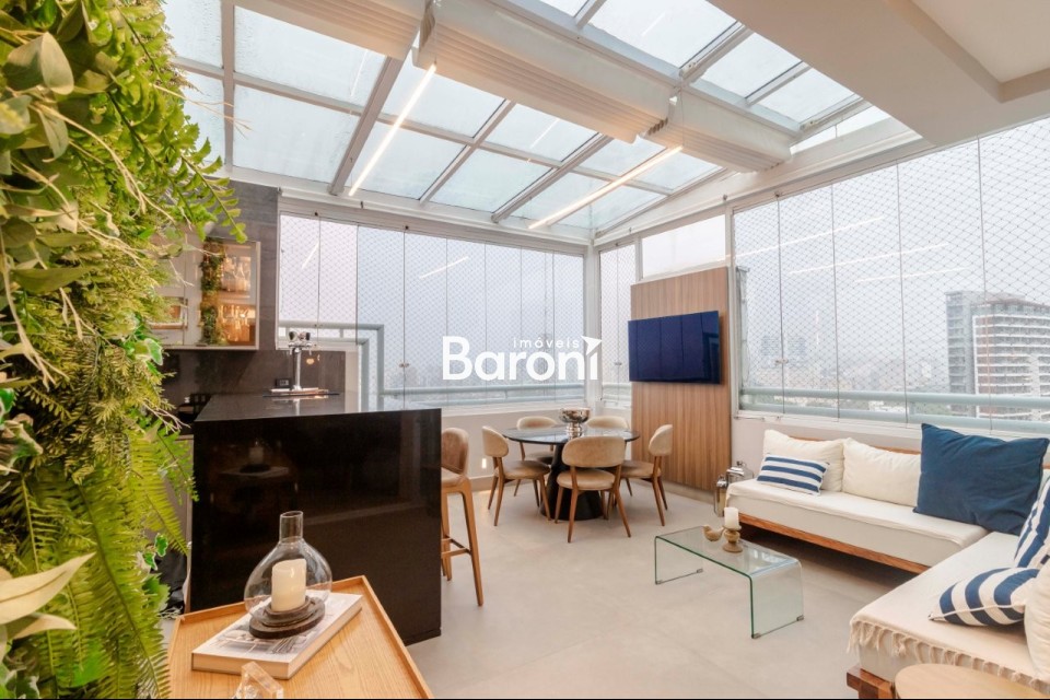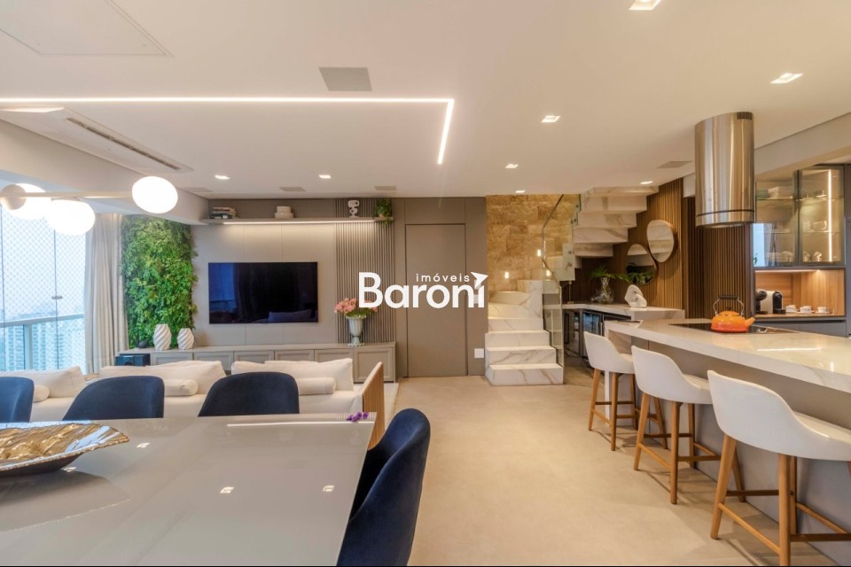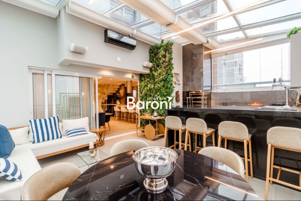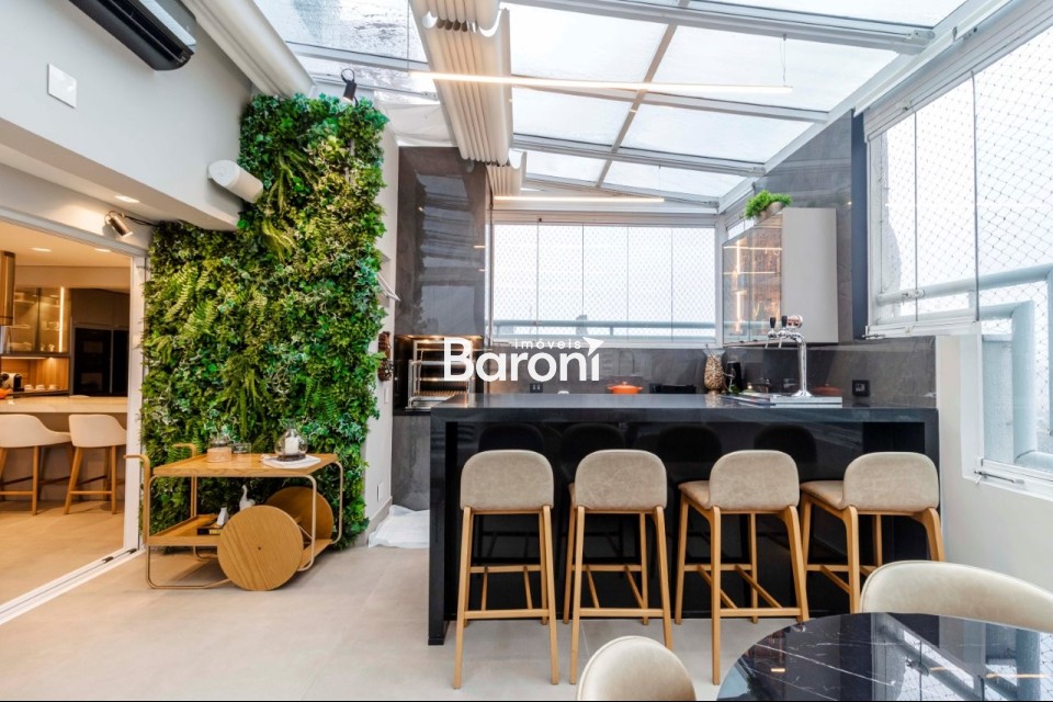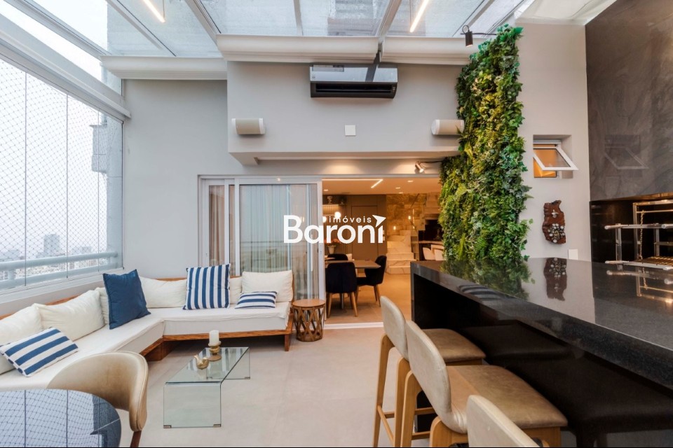 Cobertura duplex em Pinheiros, 3 suítes, 4 vagas, terraço gourmet integrado, automação total, acabamentos de alto padrão. Baroni Imóveis, imobiliária em Moema, especializada em compra e venda de imóveis residenciais em São Paulo.