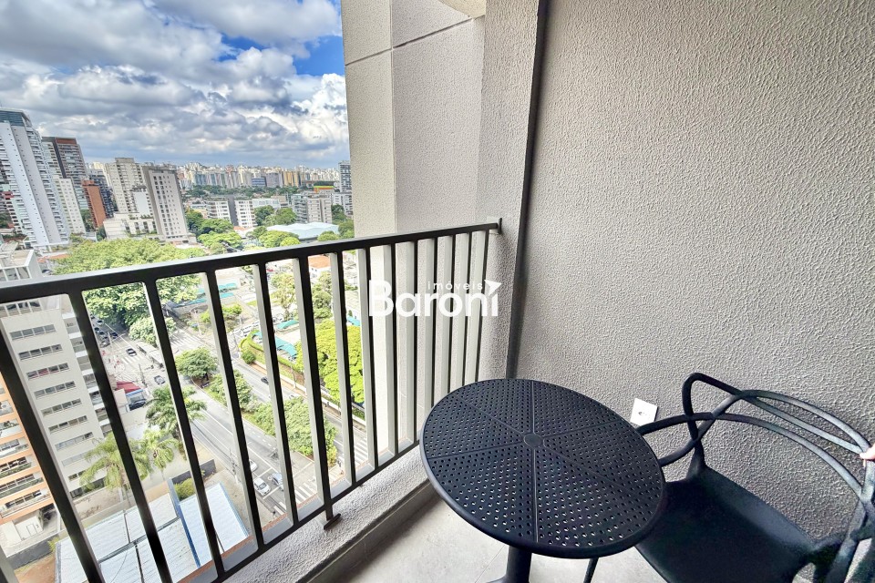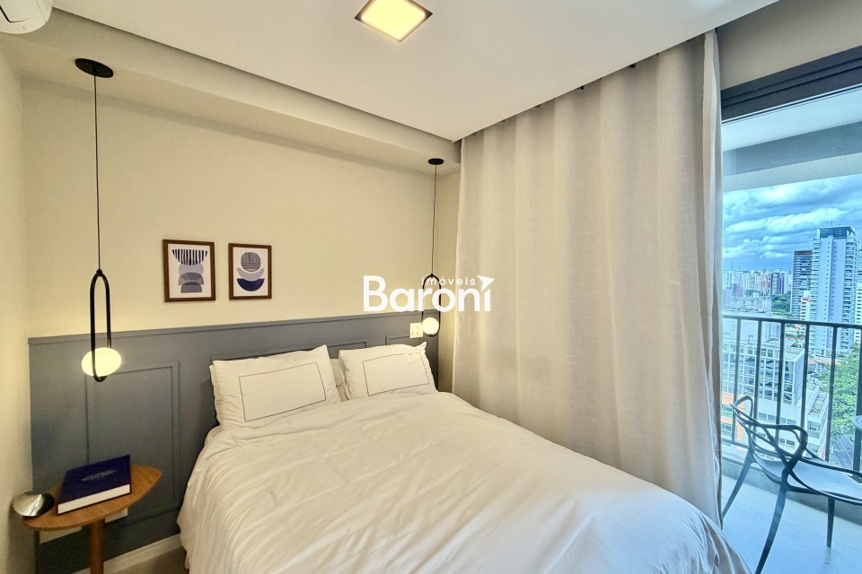O apartamento em estilo studio, possui sacada fechada em vidro, ar-condicionado, totalmente mobiliado. O edifício possui lazer completo, tendo como destaque a piscina e o espaço gourmet no rooftop. Possui sistema de locação Airbnb, ideal para executivos e estudantes. Localizado na Avenida Santo Amaro, próximo ao eixo Berrini - Faria Lima, contanto com grandes empresas de tecnologia e sedes de bancos, além de faculdades como o Insper e Anhembi Morumbi. Acesso fácil aos shoppings Ibirapuera e Morumbi.
