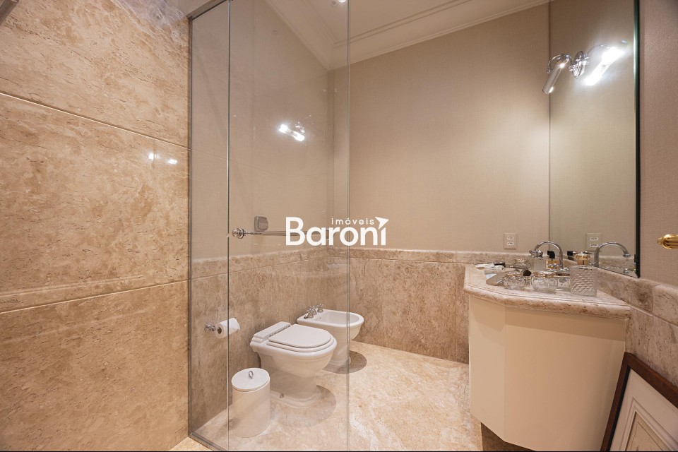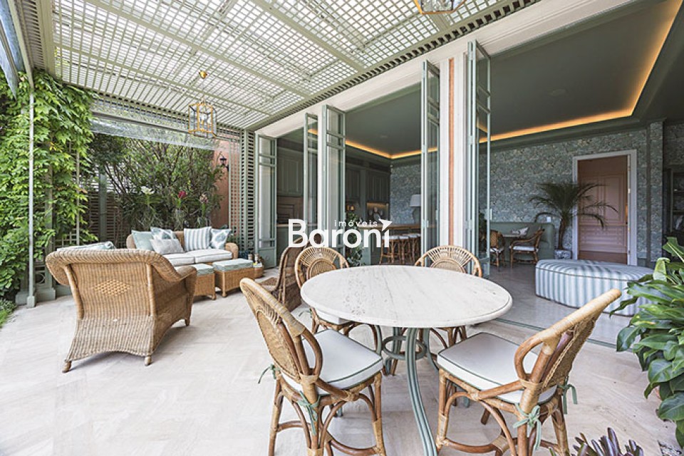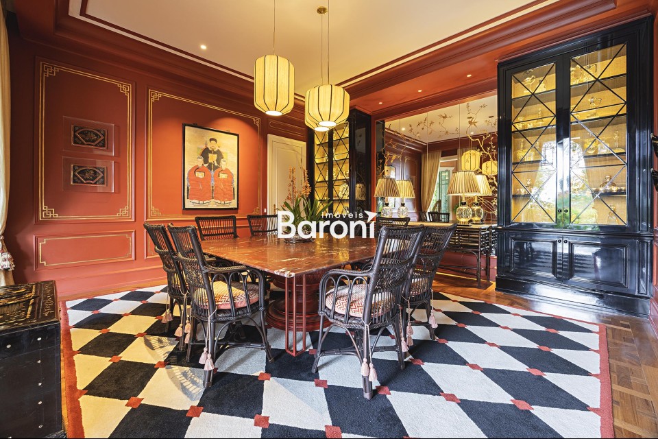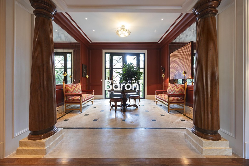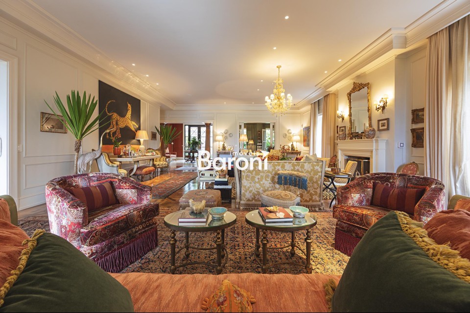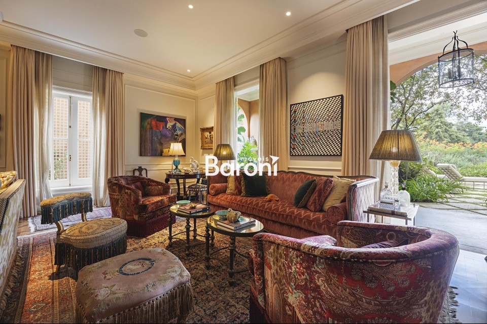 Residência com arquitetura inspirada no estilo toscano, reinterpretada sob uma abordagem contemporânea, implantada em terreno generoso e envolvida por jardim assinado por Alex Hanazaki, criando integração equilibrada entre arquitetura e paisagismo. O projeto arquitetônico, concebido por Marcelo Villa, valoriza a entrada de luz natural em todos os ambientes, resultando em espaços amplos, bem iluminados e com circulação fluida. Os interiores apresentam acabamentos cuidadosamente selecionados, com obras de arte integradas e marcenaria de qualidade, além de decoração assinada por Suzana Shermann, que confere unidade visual aos ambientes. A área social é bem resolvida, com elevador interno conectando os pavimentos, piscina integrada ao terraço e um amplo terraço gourmet equipado com churrasqueira, máquina de gelo, adegas, fogão de indução e copa de apoio. A área íntima dispõe de quatro suítes bem dimensionadas, com destaque para a suíte principal, que conta com espaço de escritório, antessala e terraço contínuo com vista aberta. A cozinha é funcional e equipada com eletrodomésticos de desempenho elevado. A garagem comporta até oito veículos. Uma residência que reúne projeto arquitetônico consistente, paisagismo integrado e soluções funcionais para o dia a dia. Gostou? Agende sua visita com um dos nossos corretores, a Baroni tornará esta a melhor jornada de compra da sua vida! Referência do imóvel: 415110. Baroni Imóveis, imobiliária sediada em Moema, especializada em compra e venda de apartamentos e casas, em bairros nobres de São Paulo.