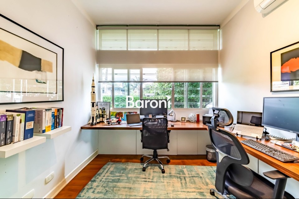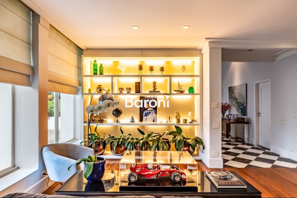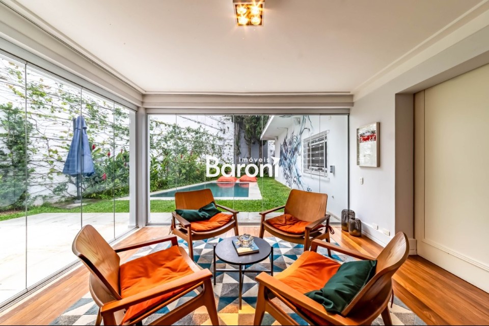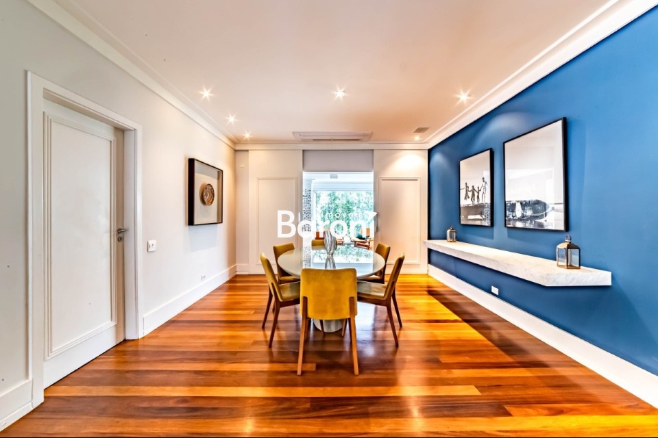 Arquitetura marcante O projeto assinado traz presença e personalidade logo na chegada, com pé direito duplo e porta em madeira maciça que anunciam a atmosfera da casa. A arquitetura clássica ganha leveza com espaços amplos, bem proporcionados e uma distribuição que valoriza a circulação. Convívio ao ar livre Os ambientes sociais se conectam diretamente à piscina, à sauna e ao jardim de inverno, criando uma relação constante entre interior e exterior. A casa é perfeita para quem gosta de receber, com espaços que fluem bem e convidam a encontros longos e descontraídos. Rua desejada Localizada em uma rua tranquila e sem saída, cercada por praças e muito verde, a casa oferece uma rotina silenciosa e agradável. A manutenção impecável reforça a sensação de conforto diário, enquanto o bairro proporciona acesso fácil e uma vizinhança consolidada. Gostou? Agende sua visita com um dos nossos corretores, a Baroni tornará esta a melhor jornada de compra da sua vida! Referência do imóvel: 415123. Baroni Imóveis, imobiliária sediada em Moema, especializada em compra e venda de apartamentos e casas, em bairros nobres de São Paulo.