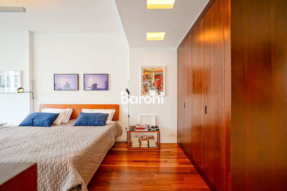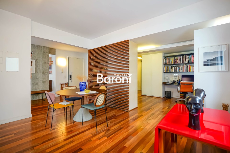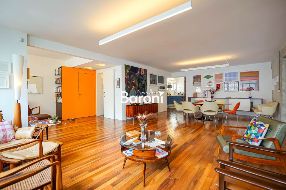 Apartamento único, resultado da junção de duas unidades, com arte e amplitude raras, nos Jardins. Um espaço singular: A fusão de dois apartamentos criou um imóvel absolutamente diferente, com atmosfera descolada. A reforma assinada por arquitetos valoriza a claridade e a amplitude, com piso de madeira lindo e bem conservado. Um apê que foge do óbvio e entrega uma experiência de morar especial. Arte que vive nas paredes : Obras pintadas diretamente nos ambientes pela artista Monica Nador, do Grupo JAMAC, transformam a casa em algo mais autoral. A sala comporta muitos usos e composições, com luz natural abundante e uma presença artística que faz cada canto ter personalidade própria. Privacidade e vista rara: A suíte master é isolada, com closet e banheiro com dois chuveiros, criando um espaço confortável. Do outro lado, uma segunda suíte e mais um quarto garantem versatilidade. O prédio recuado da rua oferece uma vista rara no Jardins, e o fato de ocupar o andar inteiro reforça a sensação de conforto. Gostou? Agende sua visita com um dos nossos corretores, a Baroni tornará esta a melhor jornada de compra da sua vida! Referência do imóvel: 415237 Baroni Imóveis, imobiliária sediada em Moema, especializada em compra e venda de apartamentos e casas, em bairros nobres de São Paulo.